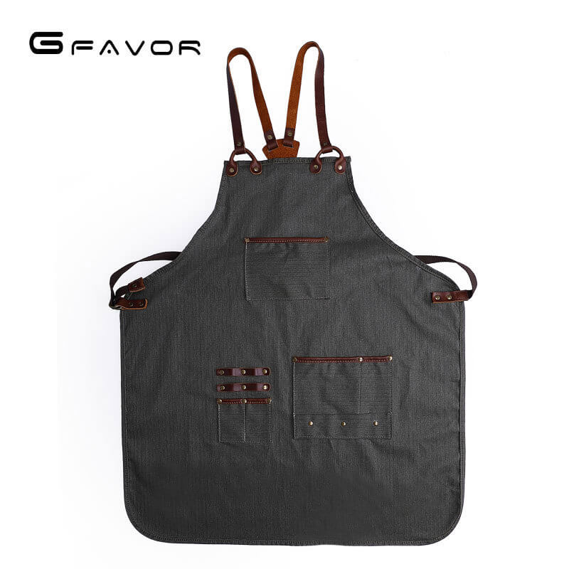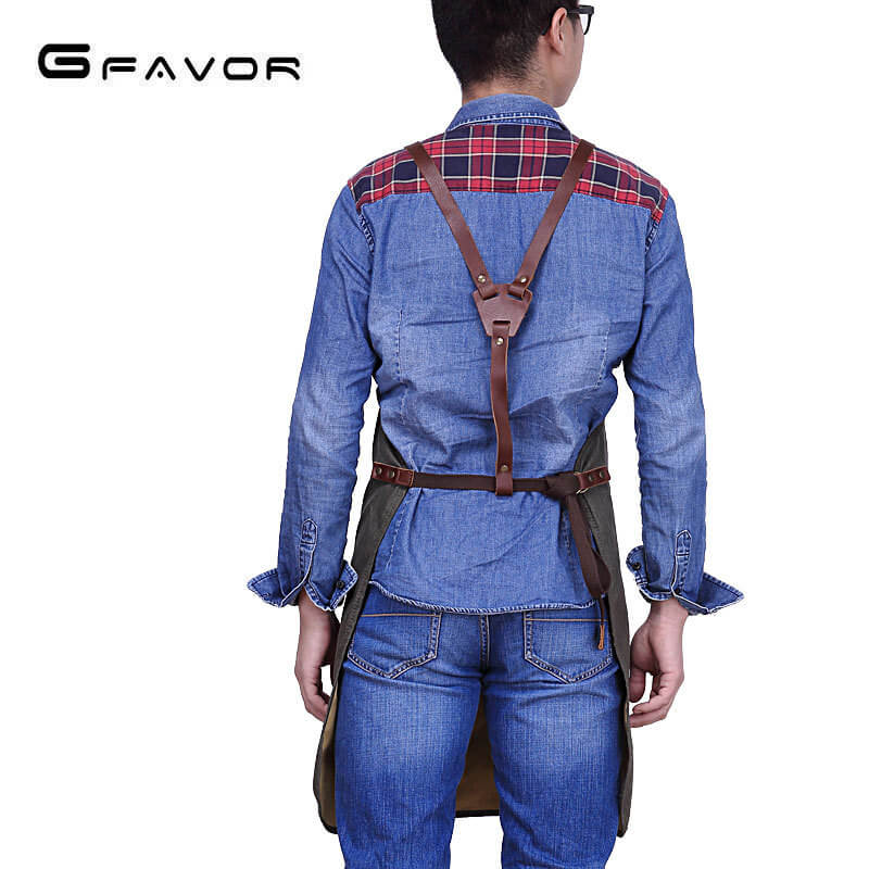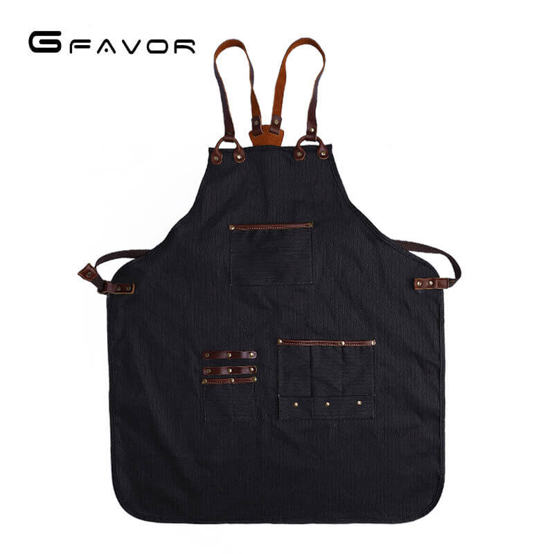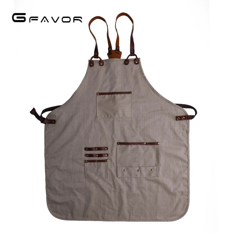 Jedes Detail – von den geschmeidigen Lederträgern bis zum Glanz der verstärkten Metallnieten – steht für bewusstes Design. Das verstellbare Schulter-Tragesystem reduziert Nackenbelastung und macht die Schürze auch über Stunden angenehm zu tragen.