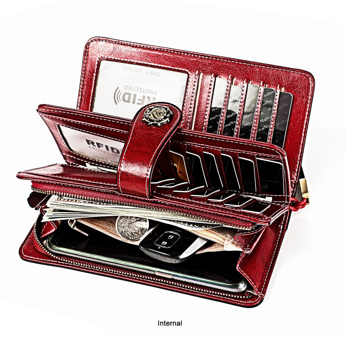 Una cartera tan completa también debería sentirse personal. Los colores incluyen rojo vino, negro, rosa, amarillo, azul pavo real, marrón, café, morado, azul claro, azul oscuro y verde oscuro—para elegir algo llamativo, discreto o listo para regalar. Con la RFID Genuine Leather Wallet, el look es intencional: moderno, romántico en concepto y diseñado como ese detalle de “buena vida” que llevas cada día.